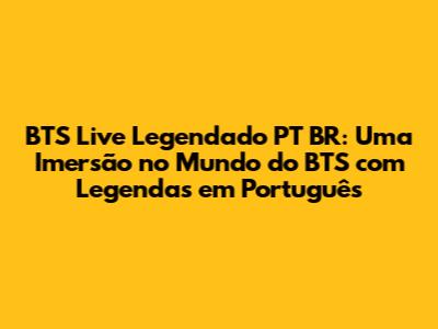 BTS Live Legendado PT BR: A Jornada Musical Com Legendas Em Português