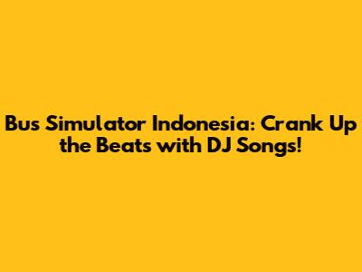 Bus Simulator Indonesia: Pump Up The Volume With DJ Songs!