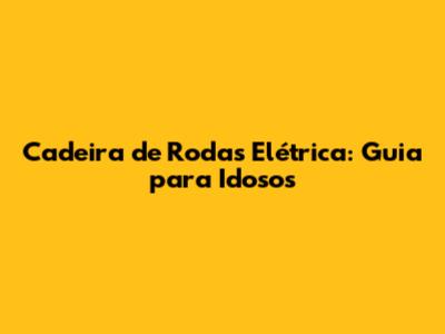 Cadeira De Rodas Elétrica: Guia Para Idosos