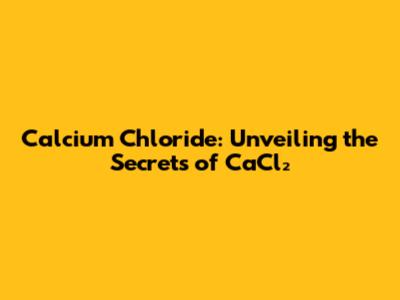 Calcium Chloride: Unveiling The Secrets Of CaCl₂