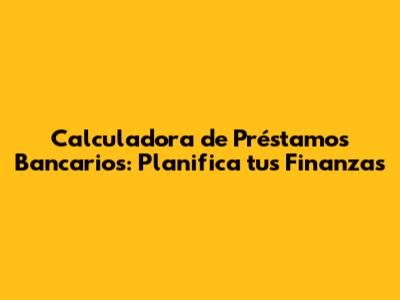 Calculadora De Préstamos Bancarios: Planifica Tus Finanzas