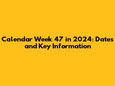 Calendar Week 47 In 2024: Dates And Key Information