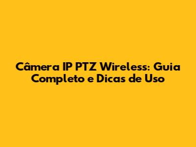 Câmera IP PTZ Wireless: Guia Completo E Dicas De Uso