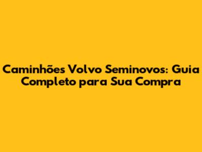 Caminhões Volvo Seminovos: Guia Completo Para Sua Compra