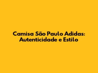 Camisa São Paulo Adidas: Autenticidade E Estilo