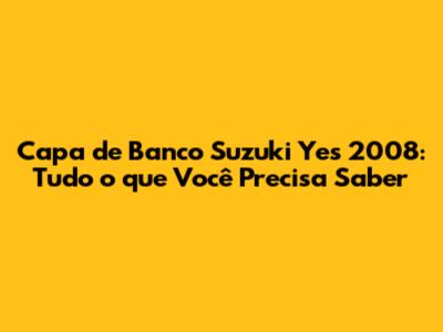 Capa De Banco Suzuki Yes 2008: Guia Completo E Dicas