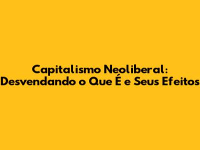 Impactos e Críticas ao Capitalismo Neoliberal