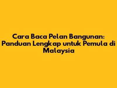 Cara Baca Pelan Bangunan: Panduan Lengkap Untuk Pemula Di Malaysia