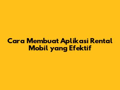 Cara Membuat Aplikasi Rental Mobil Yang Efektif