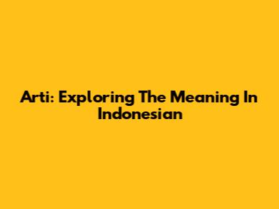 Arti: Exploring The Meaning In Indonesian