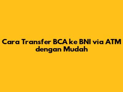 Cara Transfer BCA Ke BNI Via ATM Dengan Mudah