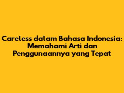 Hey guys! Pernah denger kata "careless"? Kata ini sering banget kita denger dalam percakapan sehari-hari, terutama di kalangan anak muda. Tapi, tau nggak sih apa arti sebenarnya dari "careless" dalam Bahasa Indonesia? Nah, di artikel ini, kita bakal bahas tuntas tentang arti "careless" dan gimana cara penggunaannya yang tepat. Yuk, simak!