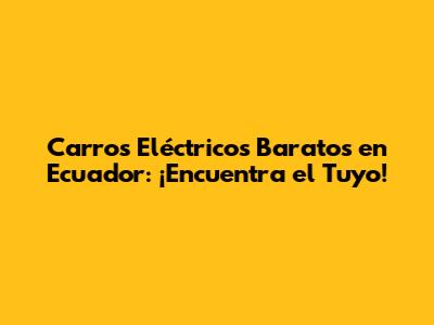 Carros Eléctricos Baratos En Ecuador: ¡Encuentra El Tuyo!