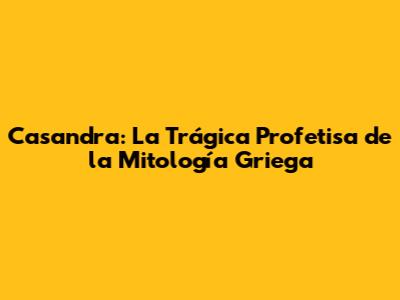 Casandra: La Trágica Profetisa De La Mitología Griega