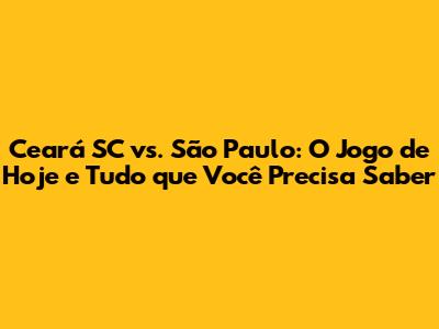 Ceará SC Vs. São Paulo: Tudo Sobre O Jogo De Hoje!