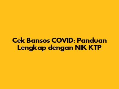 Cek Bansos COVID: Panduan Lengkap Dengan NIK KTP