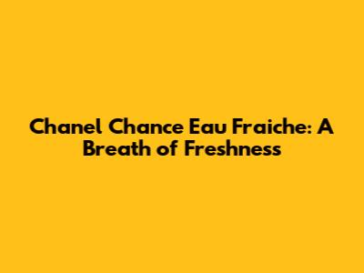 Chanel Chance Eau Fraiche: A Breath Of Freshness
