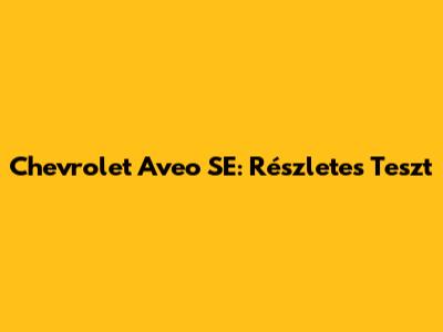 Chevrolet Aveo SE: Részletes Teszt