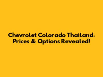 Chevrolet Colorado Thailand: Prices & Options Revealed!