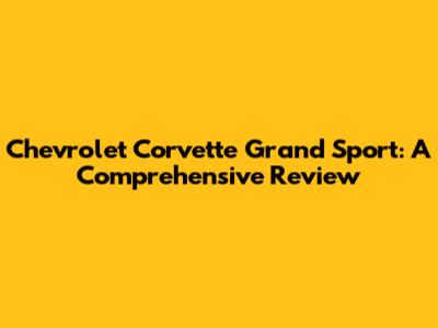 Chevrolet Corvette Grand Sport: A Comprehensive Review