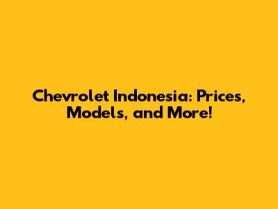 Chevrolet Indonesia: Prices, Models, And More!