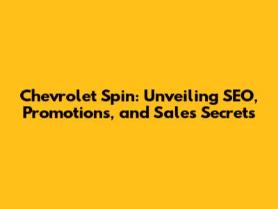 Chevrolet Spin: SEO, Promotions, And Sales Secrets