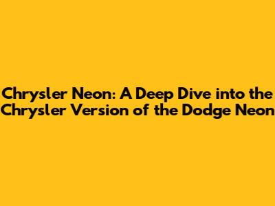 Hey everyone! Ever wondered about the Chrysler Neon? Well, it's a fascinating topic, especially when you compare it to its sibling, the Dodge Neon. You see, the Chrysler Neon, though sharing a name with its Dodge counterpart, actually had some unique aspects that set it apart. This article will dive deep into the world of the Chrysler Neon, exploring its history, features, and how it stacks up against the Dodge Neon. We'll uncover the subtle and not-so-subtle differences, helping you understand this often-overlooked car model. Buckle up, guys, because we're about to take a ride through automotive history!