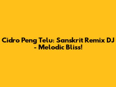 Hey guys! Ever heard a song that just hits different? That's exactly what "Cidro Peng Telu: Sanskrit Remix DJ" does. This isn't just your average remix; it's a whole vibe, blending the soulful sounds of Cidro Peng Telu with the mystical touch of Sanskrit and the energy of a DJ remix. Seriously, it’s a track that’ll get you hooked from the first beat. Let's dive into what makes this remix so special and why it’s been making waves!
