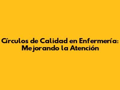 Círculos De Calidad En Enfermería: Mejorando La Atención