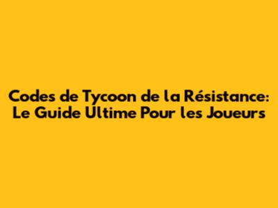 Pour répondre aux questions les plus fréquemment posées sur les codes de Tycoon de la Résistance, voici une FAQ complète :