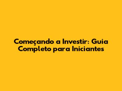 Começando A Investir: Guia Completo Para Iniciantes