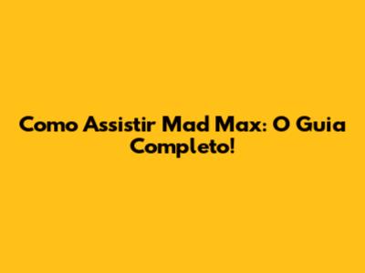 Como Assistir Mad Max: O Guia Completo!
