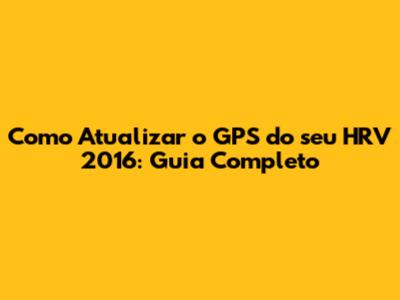 Como Atualizar O GPS Do Seu HRV 2016: Guia Completo