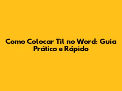Se você está se perguntando como colocar o acento til no Word, este guia prático e rápido vai te ajudar a dominar essa ferramenta essencial. O acento til (~) é crucial na língua portuguesa, usado em palavras como coração, melão e aviões. Dominar a inserção correta desse acento no Word é fundamental para garantir a clareza e a correção dos seus textos. Seja para redigir documentos formais, trabalhos acadêmicos ou e-mails, saber como utilizar o til corretamente fará toda a diferença na qualidade da sua escrita. Neste artigo, vamos explorar diferentes métodos e atalhos para que você nunca mais tenha dúvidas sobre como adicionar esse acento tão importante em seus textos no Word. Além disso, vamos abordar algumas dicas extras e solucionar problemas comuns que podem surgir durante o processo. Vamos lá!