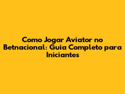 Como Jogar Aviator No Betnacional: Guia Completo Para Iniciantes