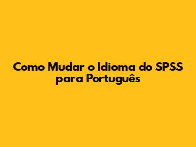 Como Mudar O Idioma Do SPSS Para Português