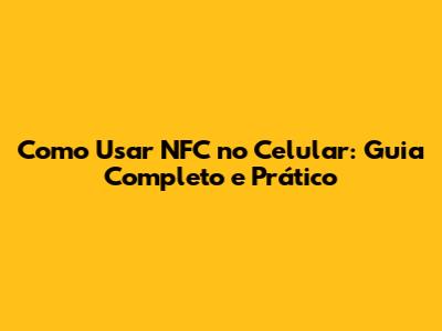 Como Usar NFC No Celular: Guia Completo E Prático