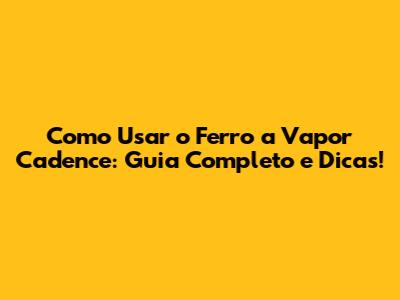 Como Usar O Ferro A Vapor Cadence: Guia Completo E Dicas!