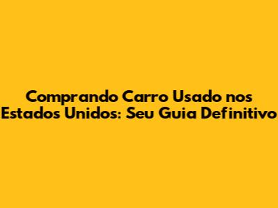 Comprando Carro Usado Nos EUA: Guia Completo