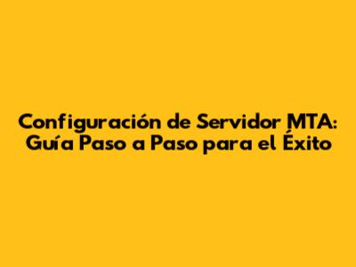 Configuración De Servidor MTA: Guía Paso A Paso Para El Éxito