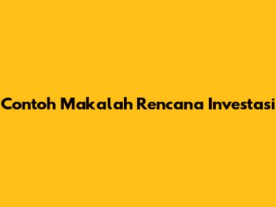 Contoh Makalah Rencana Investasi