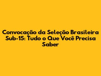 Convocação Da Seleção Brasileira Sub-15: Detalhes E Expectativas