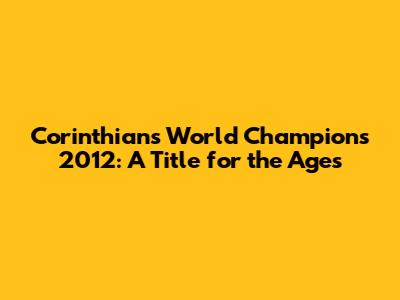 Corinthians' Epic 2012: Conquering The World!