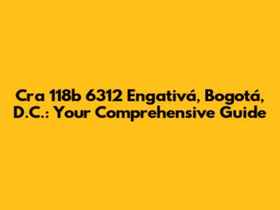 Hey guys! Are you trying to find out everything you need to know about Cra 118b 6312 in Engativá, Bogotá, D.C.? You've come to the right place! This guide will provide you with all the essential information about this location, from its exact coordinates and surrounding area to local amenities and points of interest. Whether you're planning a visit, need to send a package, or are just curious, we've got you covered. Let's dive in and explore what makes Cra 118b 6312 a notable spot in the vibrant district of Engativá. Understanding the specifics of an address is crucial, especially in a bustling city like Bogotá. So, get ready to explore every nook and cranny of this location, ensuring you have all the details you need right at your fingertips.
