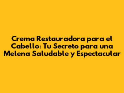 Crema Restauradora: Tu Guía Completa Para Un Cabello Radiante