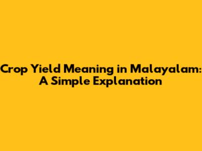 Crop Yield Meaning In Malayalam: A Simple Explanation