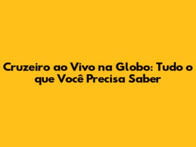 Fique atento aos horários e aos canais de transmissão dos jogos do Cruzeiro na Globo. Consulte a programação da Globo e as informações divulgadas nas redes sociais para não perder nenhum jogo.