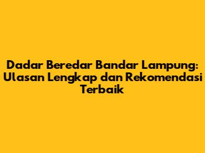 Dadar Beredar Bandar Lampung: Ulasan Lengkap Dan Rekomendasi Terbaik