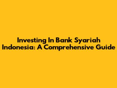 Investing In Bank Syariah Indonesia: A Comprehensive Guide