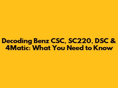 Alright, Benz enthusiasts! Ever find yourself scratching your head trying to decipher all those acronyms and codes associated with your Mercedes-Benz? You're not alone! Today, we're diving deep into the meanings behind CSC, SC220, DSC, and 4Matic, shedding light on what these terms signify for your vehicle's performance, features, and overall driving experience. So, buckle up and get ready to decode the world of Mercedes-Benz!